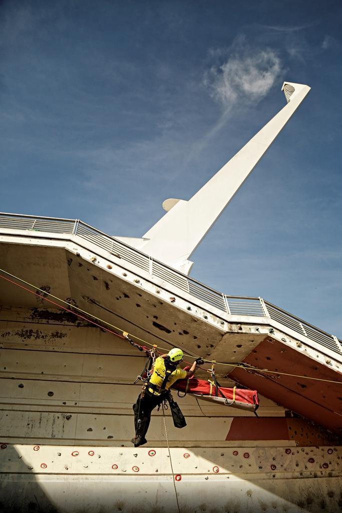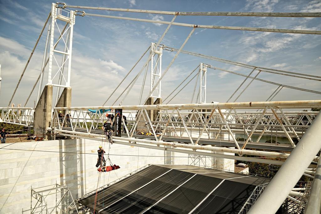 Evacuación mediante puente grúa en una simulación de inundación, Puente del Alamillo. © Curro Martinez, KORDA’S